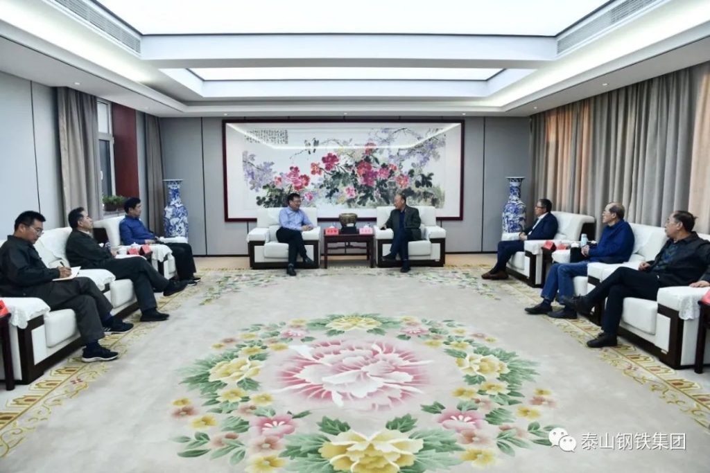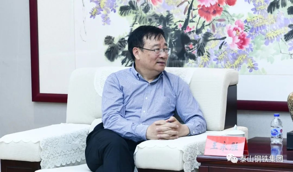 5月6日,泰山钢铁集团董事长、党委书记、总裁王永胜在办公楼贵宾室热情接待了中钢协原常务副会长朱继民一行。
