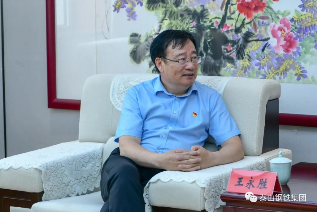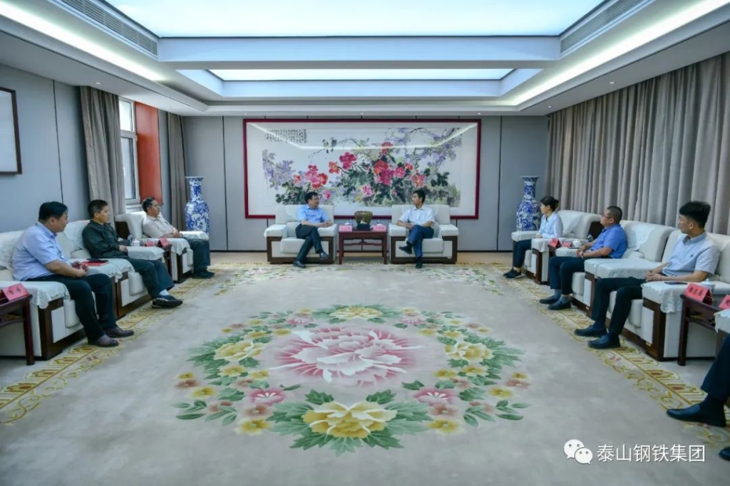6月15日,泰山钢铁集团董事长、党委书记、总裁王永胜在办公楼贵宾室接待了泰维能源集团股份有限公司董事长于希明一行,双方围绕氢能源产业进行了座谈交流。