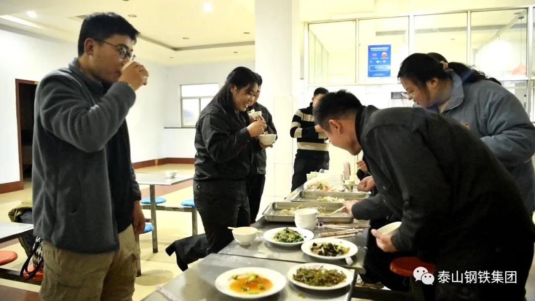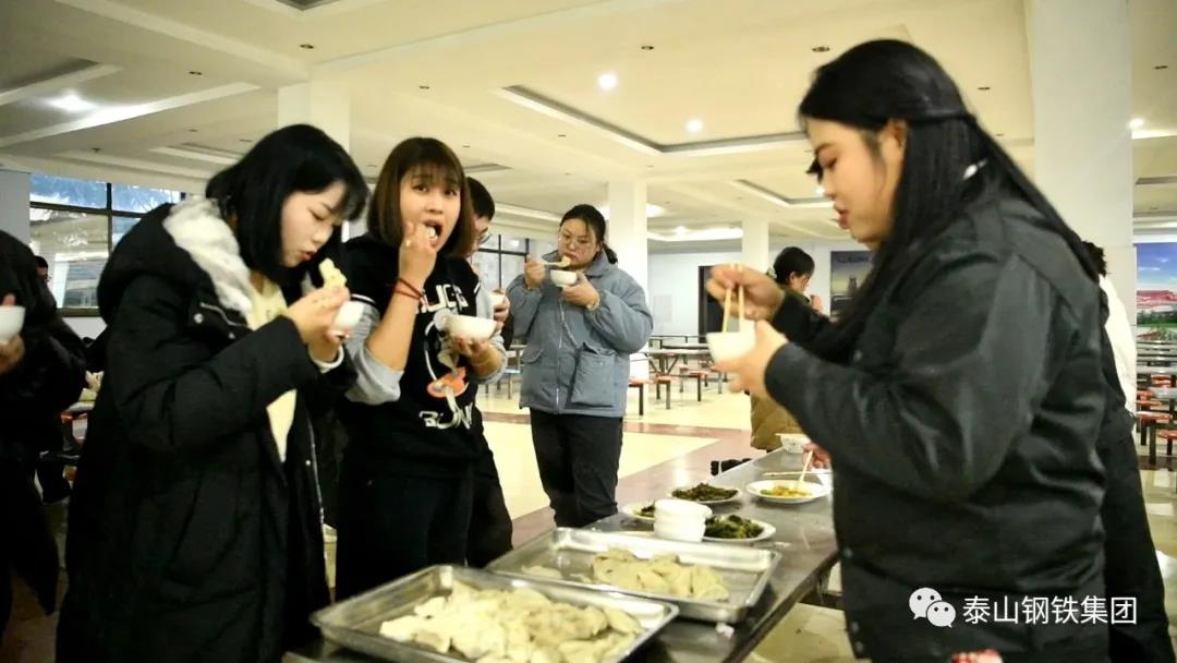 忙碌了好一会儿,一盘盘热腾腾、香喷喷的饺子终于新鲜出锅。大家们吃着美味的饺子,畅谈在公司快乐的日子,脸上都洋溢着幸福的笑容。小小的饺子,让每一位大学生都感受到冬日的温暖;小小的饺子,汇聚了泰钢对大学生们的美好祝福。此次活动,不仅让大学生们吃上了节日的饺子,增进了工友情,更重要的是让他们感受到了集团公司的关心和关爱,提升了对企业的认同感和归属感。