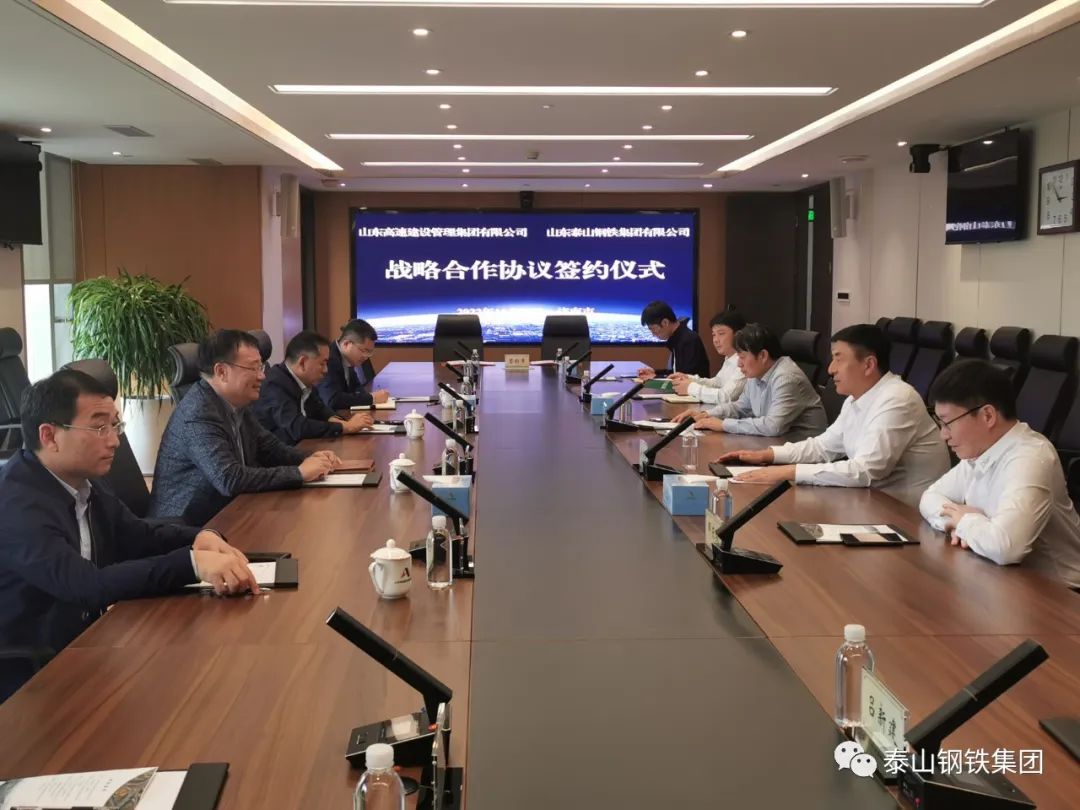 10月15日,泰山钢铁集团与山东高速建设管理集团有限公司签署战略合作协议。山东高速建设管理集团有限公司党委书记、董事长徐庆军,集团党委书记、董事长王永胜等领导出席仪式。山东高速建设管理集团有限公司党委副书记、工会主席张庆涛主持仪式。
