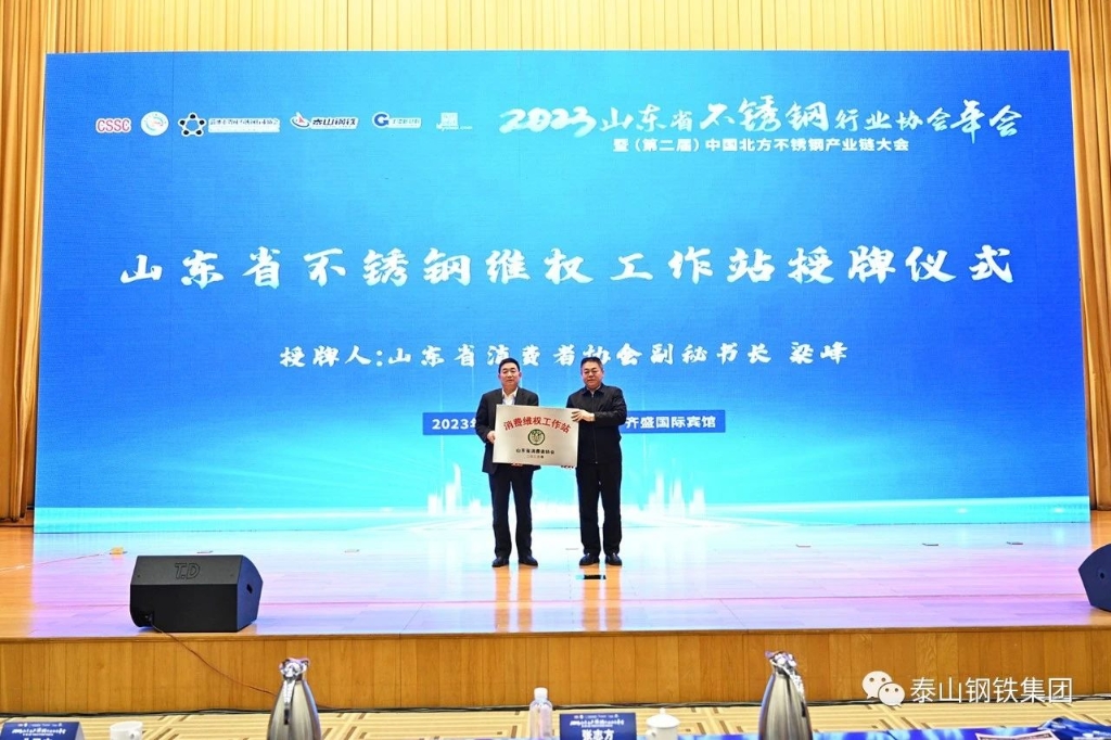 12月1日,2023山东省不锈钢行业协会年会暨(第二届)中国北方不锈钢产业链大会在淄博齐盛国际宾馆召开。本次大会由中国钢铁工业协会不锈钢分会、山东省不锈钢行业协会、淄博市周村不锈钢行业协会主办,山东泰山钢铁集团有限公司、广西北港新材料有限公司联合主办,上海期货交易所协办,上海钢联电子商务股份有限公司承办。