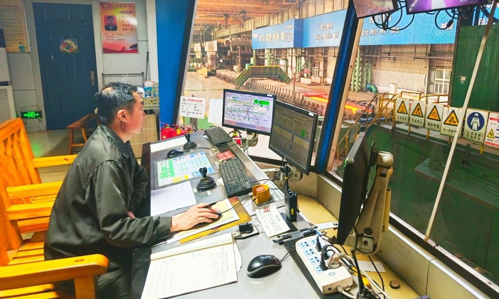 双眼紧盯大屏,双手在主控台上飞速操作,大脑高速运转……在泰山钢铁集团不锈钢轧钢厂轧钢车间粗轧操作室内,粗轧班的成员们相互协调一致,亲密无间协调一致。在这些 的得心应手调节下,璀璨夺目的钢坯裹挟着滔滔热浪,在辊道上呼啸加行,璀璨夺目的微光映一闪一闪整条产线。